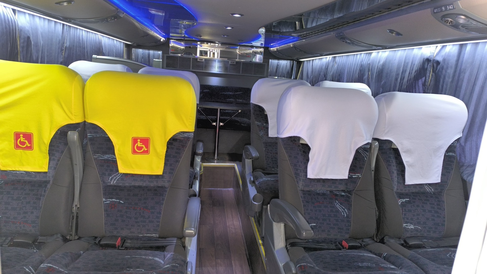 🚍 Iluminação LED e entradas USB em todas as poltronas;